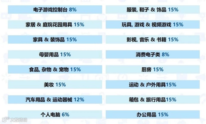 今年,沃尔玛面向中国开始全面招商,其中最为主要的五个类目为Consumables(易消耗品类)、Apparel(服装)、ETS(外贸公司)、Hardlines(硬件货品)、Home(家具),具体分类如下: