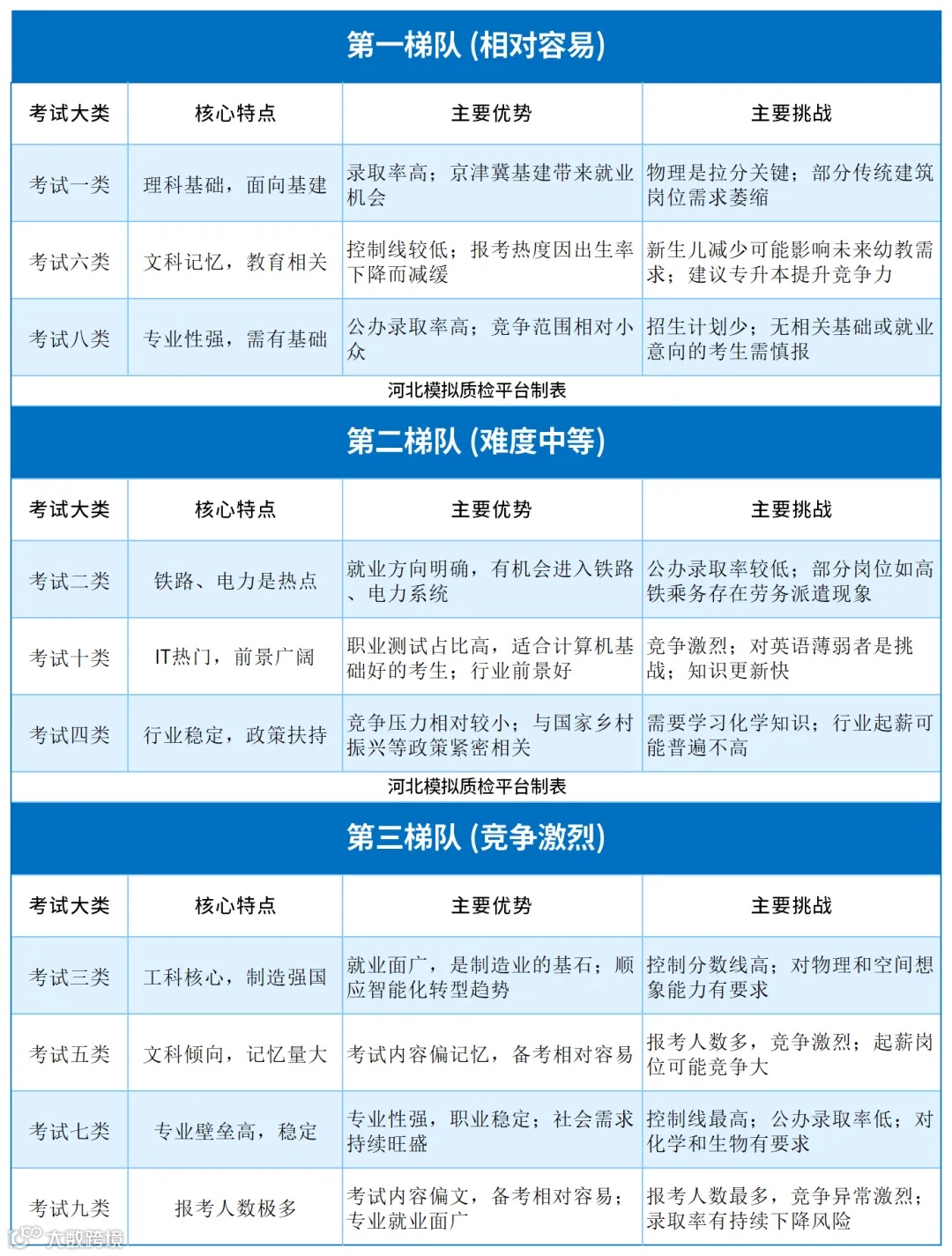 如果核心目标是"稳上岸",可以优先关注第一梯队中控制线较低、总录取率高的大类,如考试一类、六类。