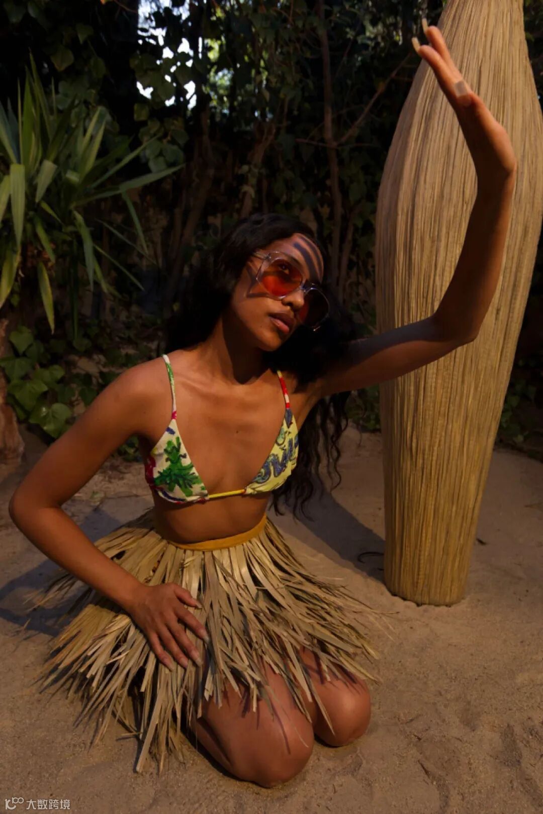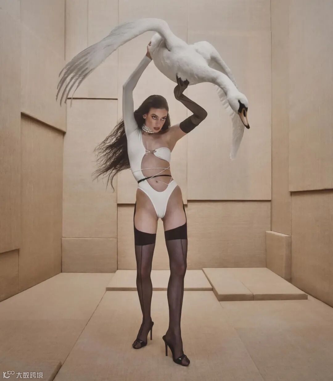 泳装品牌 Dilara Findikoglu 没有纠结于穿上泳装后的性感,没有泳池和海滩,而是把观者拉入一个“空灵的梦境”,同时隐约表达着对物化女性的批判: