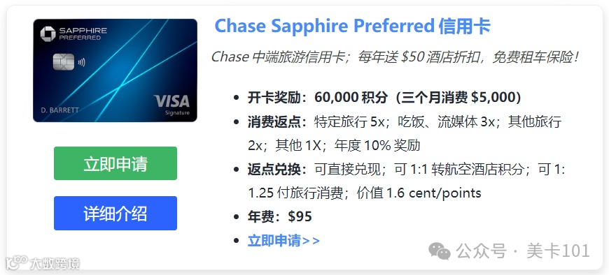 年费95美元,流媒体消费享3倍Ultimate Rewards积分。积分可转兑航空与酒店伙伴,估值约1.5美分/点,相当于4.5%返现。持卡人通常以旅行为主要用途,若已持有该卡,无需另申流媒体专项卡[k]。