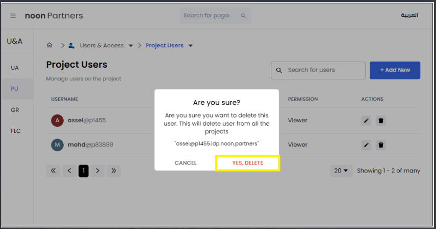 找到需要移除的用户,点击其对应的 “删除(Delete)” 按钮。