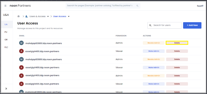 进入 “用户权限(User Access)” 管理面板,您将看到所有已添加的用户列表。 -