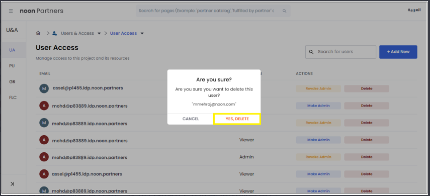 在确认弹出框中,点击 “是的,删除(Yes, Delete)” 完成删除。