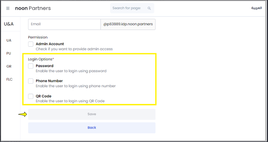 为该用户选择 登录方式(Login Option),例如:密码、手机号或二维码。 -