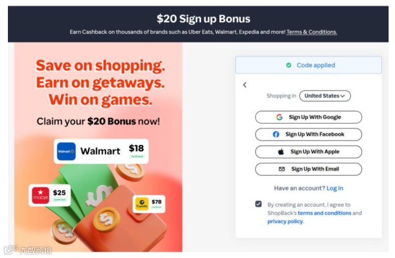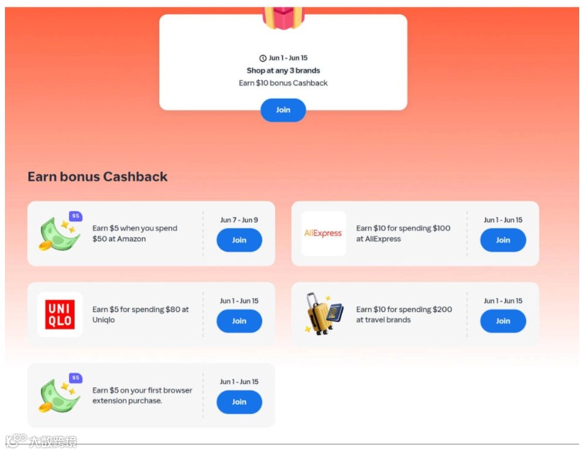 【2025.6 更新】Shopback推出新一轮新用户奖励活动,通过指定链接或输入优惠码“6BONUS”注册,可获得$20开户奖励,并参与专属quest任务[k]。新用户在Amazon单笔消费满$50,可叠加多项返现优惠,包括注册奖励$20、Amazon返现$5、浏览器插件返现$5及专属quest返现$10,总计最高可达$40[k]。