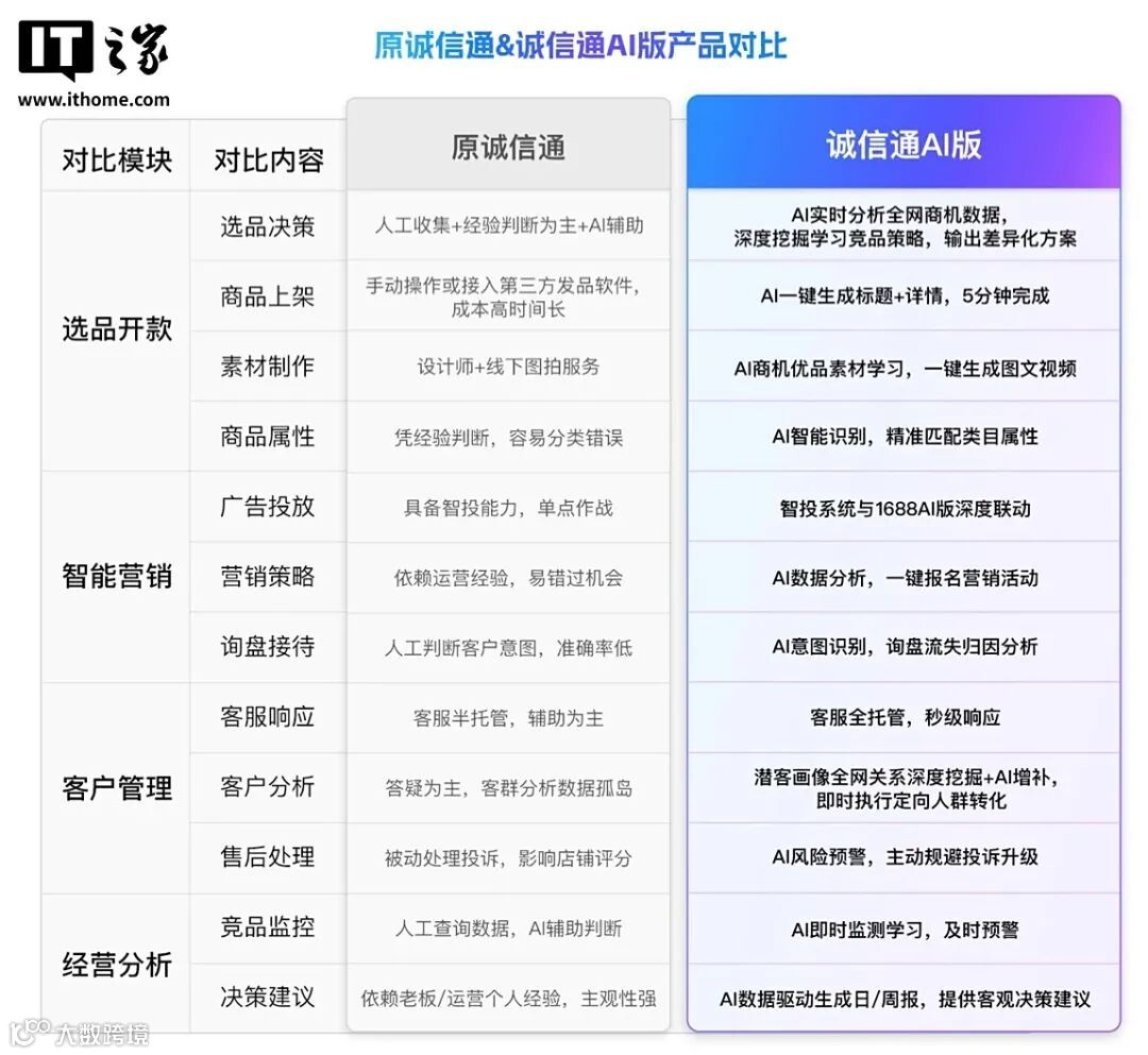 近年来,1688平台持续加码AI能力,结合海量供应链数据与阿里巴巴集团的技术资源,构建产业带专属的智能服务体系。此次诚信通AI版的推出,不仅是会员服务的迭代,更是B2B电商向“AI+产业”深度融合的重要一步。