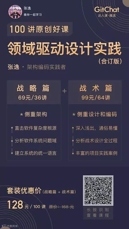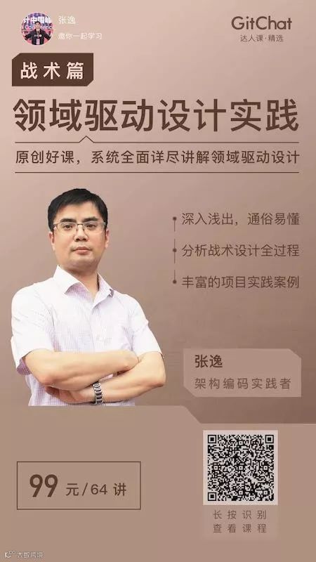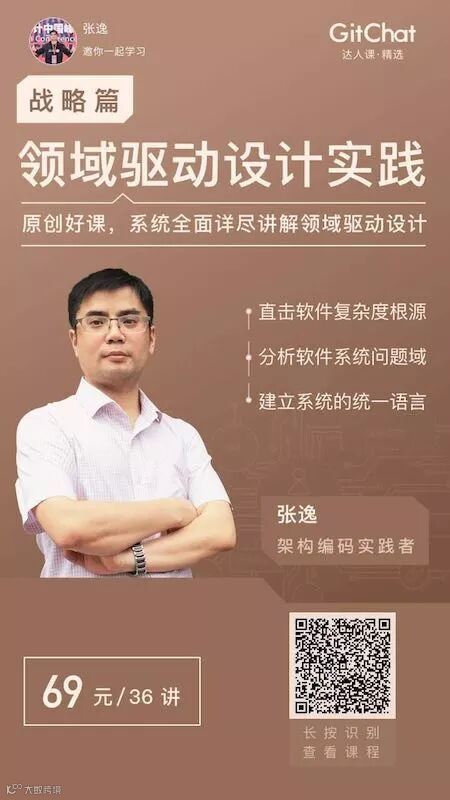 购买我在GitChat上发布领域驱动设计课程,有三种形式。购买套餐请扫描下图二维码: