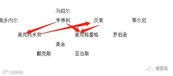 防守方面,苏格兰的变化很多。球队甚至可以在5后卫和4后卫之间转换。控球方面,亨德利和汉利作为双中卫,应该是密不可分在中路拦截。进入左、右半场,麦克托米奈与麦克格雷格和双中卫分别形成不同的三人对称组,确保防守的保障。见下图