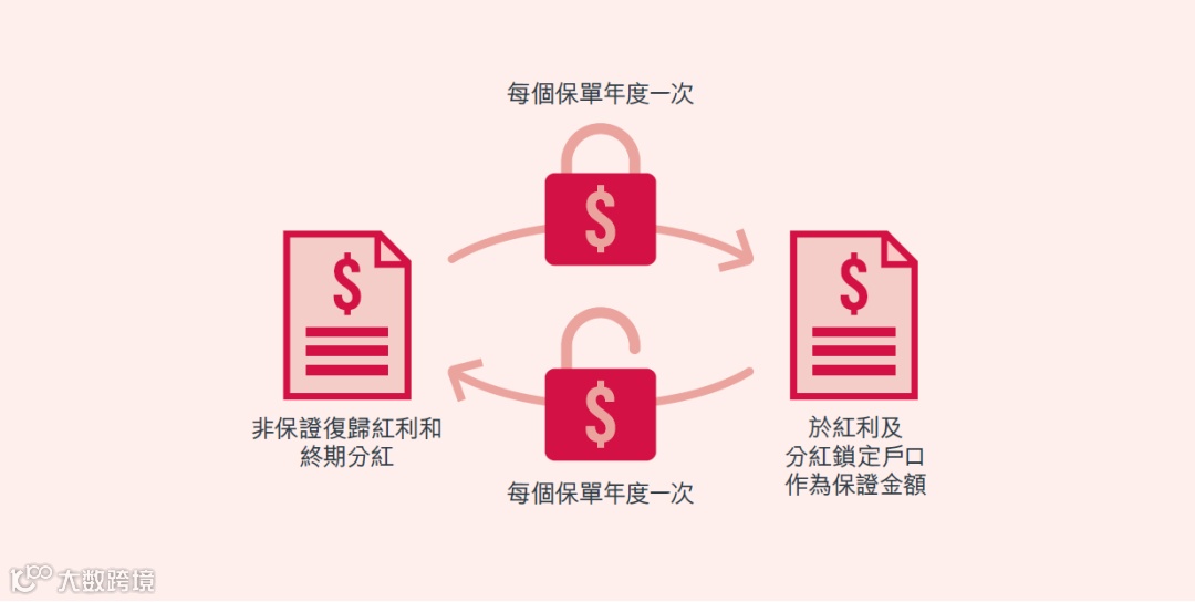 从第 15 年起,能把红利锁定,变成现金随时提取。满 1 年后,还能解锁转回分红,实现复利增值,财富增值方式超灵活。