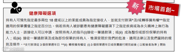 友邦环宇盈活首创的健康障碍选项超贴心!