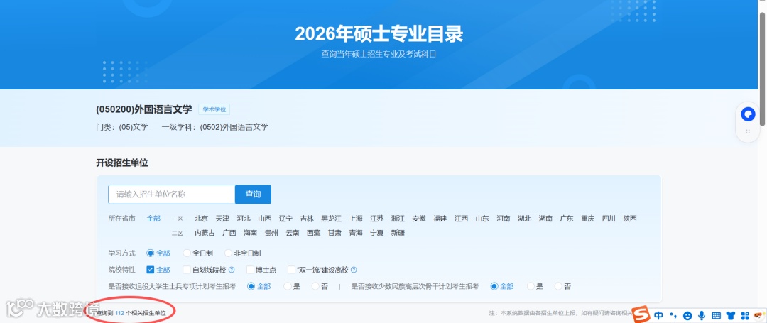 以“外国语言文学(050200)”名称招生的高校一共有112所(2025年有109所)。