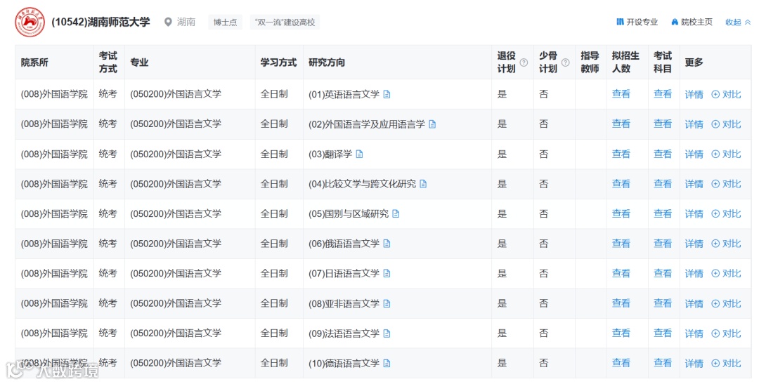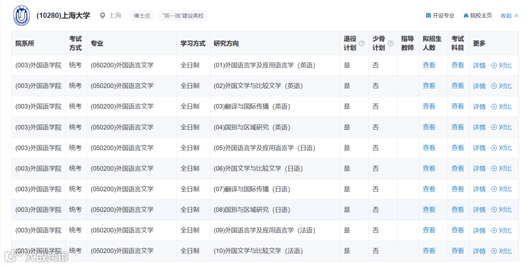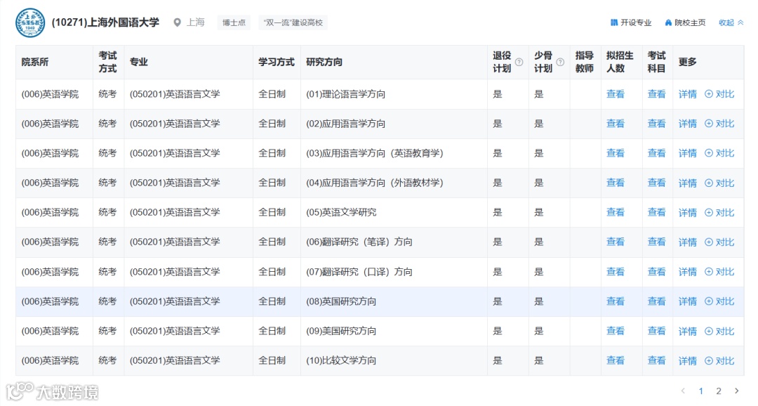 国内的八大外国语大学仍然是以“英语语言文学(050201)”招生,且个人觉得外国语大学不太可能会更改: