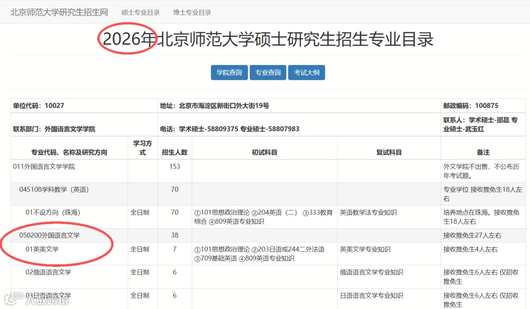 (2) 北京师范大学研究生招生网https://yz.bnu.edu.cn/