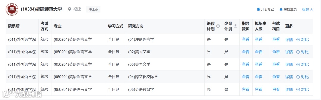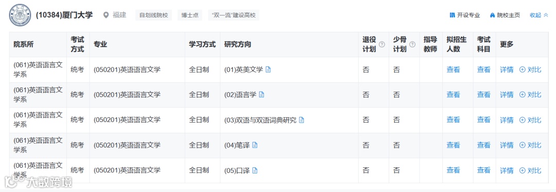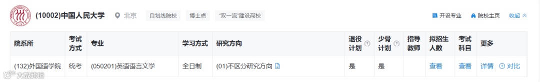 当然,如果报考的时候,发现英语语言文学(050201)专业下设写的是“不区分研究方向”,如下图:
