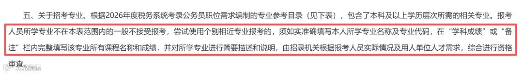 另外,近年来,不少国家公务系统以及事业单位也做出了一些努力。如国家税务总局明确规定了“英语相关专业”的范围,并且归属的较为正确,也允许不在其范围内的相关专业出示相关证明。如下图所示: