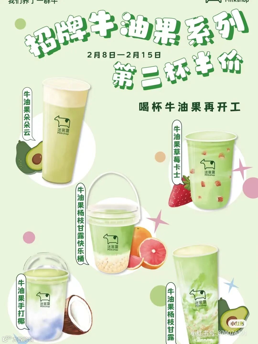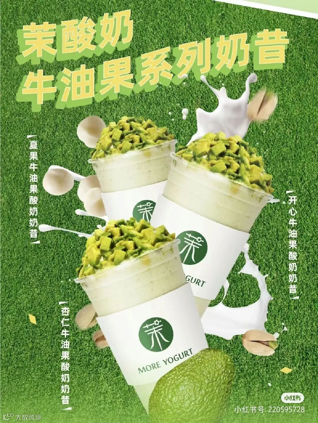 茉酸奶开辟牛油果赛道,与健康坚果、清新奶昔融合,打造实力爆款。