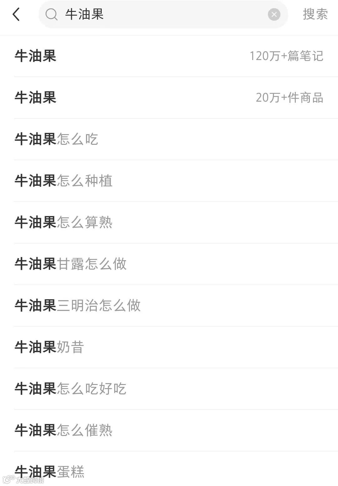 打开小红书,搜索牛油果就有120w+的笔记,光牛油果商品就有20w+。搜索词条包括但不限于牛油果饮品、牛油果烘焙、牛油果轻餐……