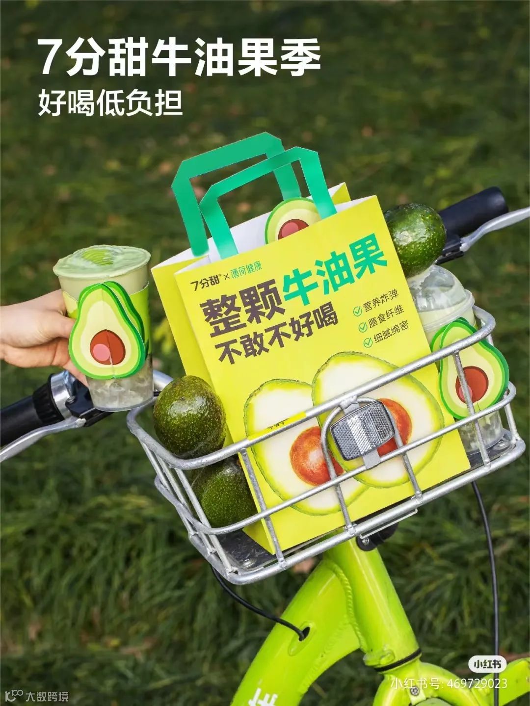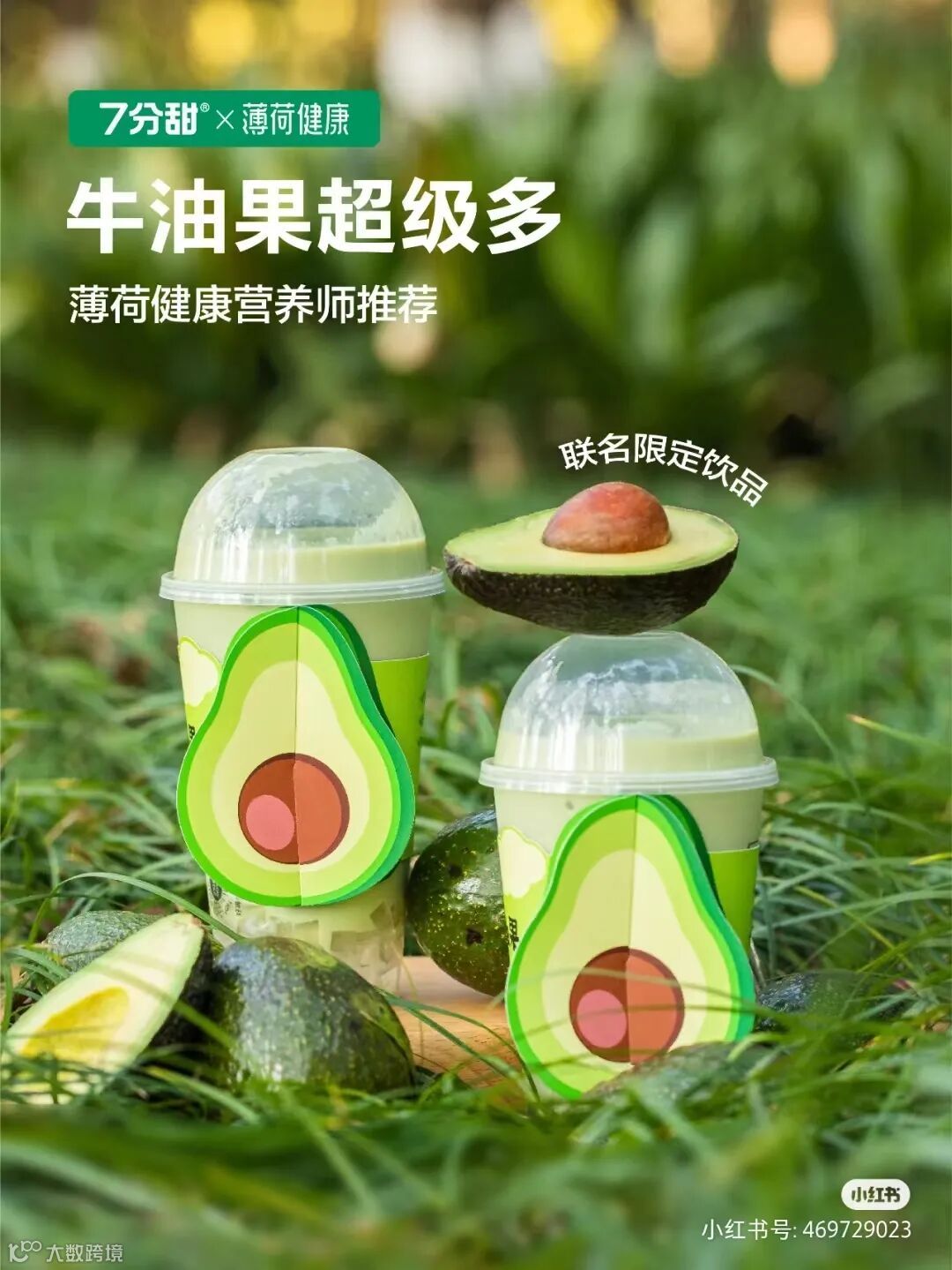7分甜与薄荷健康合作推出「牛油果超级多」,联名限定饮品。