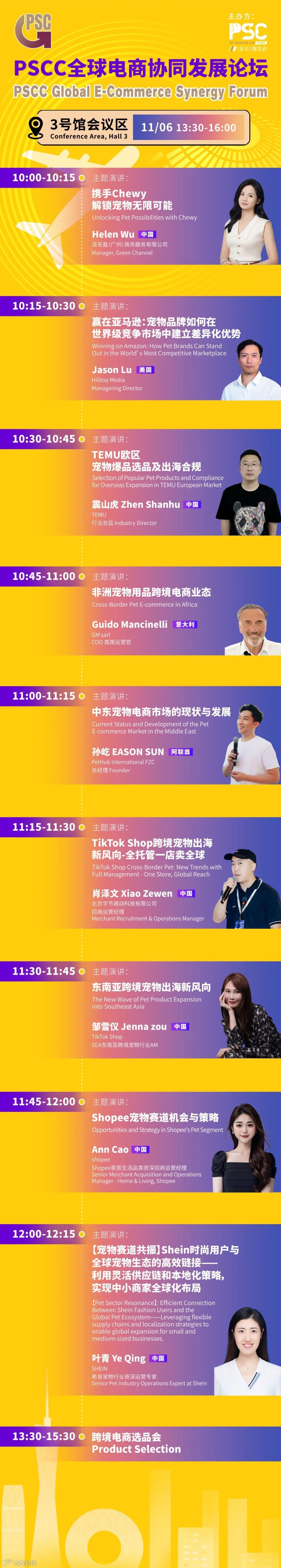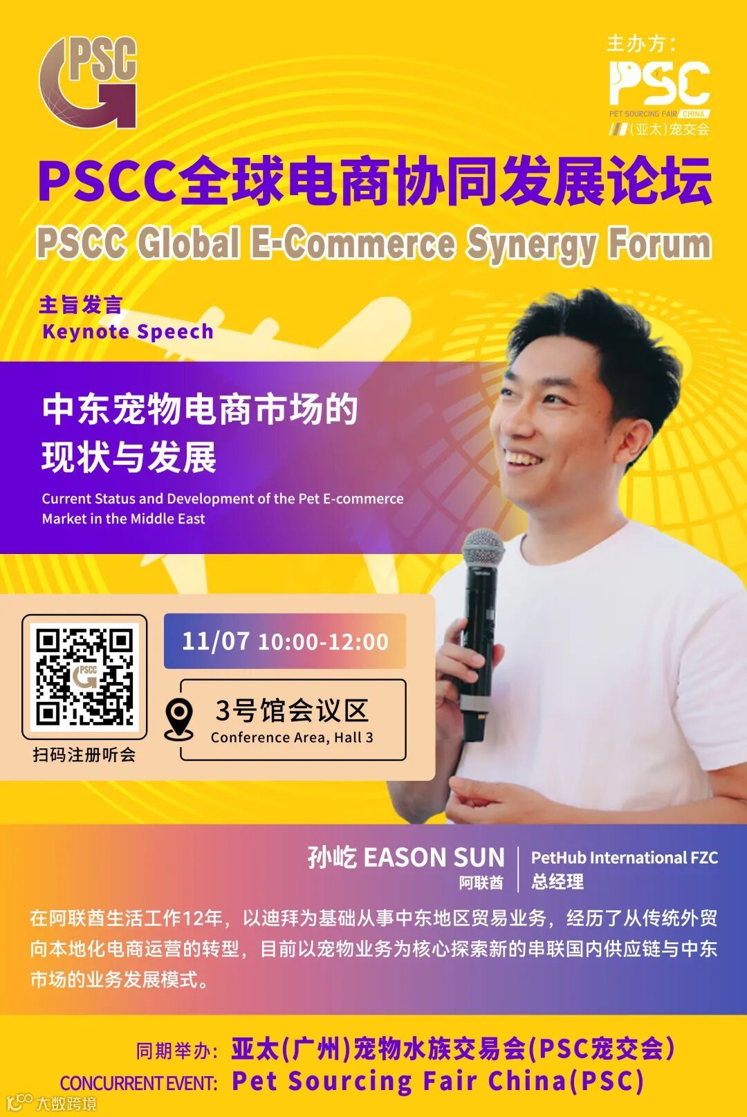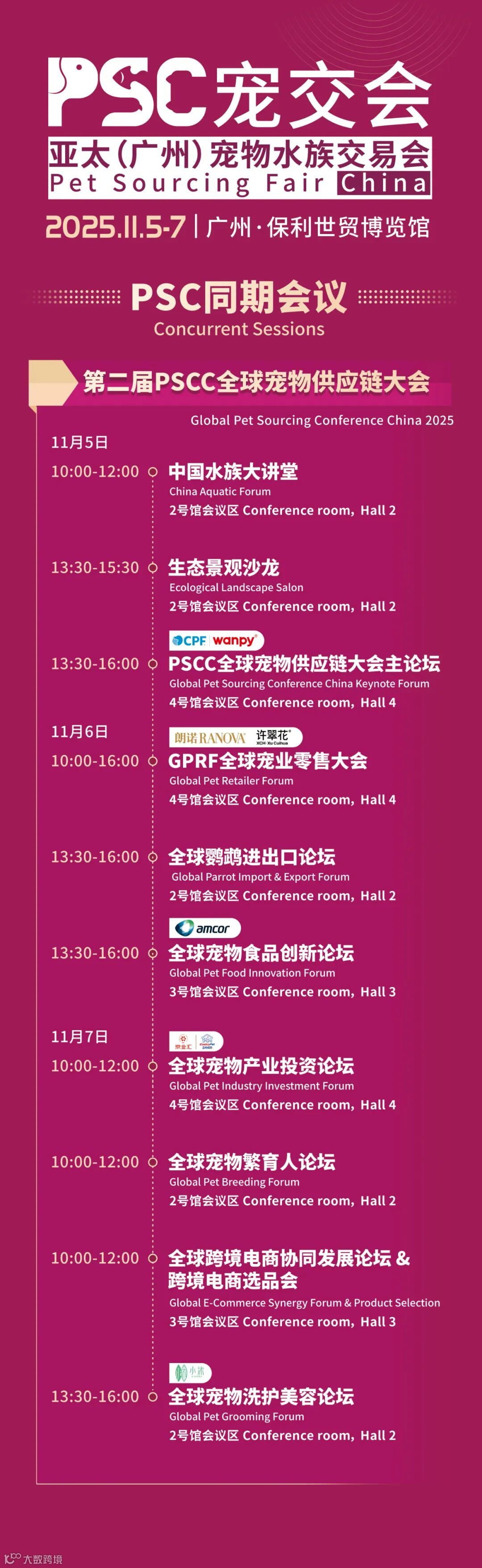 2025 年 11 月 5-7 日,广州保利世贸博览馆第二届 PSC 宠交会(Pet Sourcing Fair China)期间,一场聚焦宠物跨境电商的行业盛会 ——全球跨境电商协同发展论坛,将于11 月 7 日 10:00-12:00 在 3 号馆会议区(Conference room, Hall 3) 盛大开启!