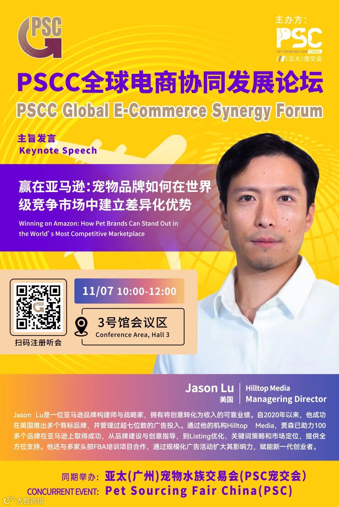 美国Hilltop Media 的 Managing Director Jason Lu 将带来 “赢在亚马逊:宠物品牌如何在世界级竞争市场中建立差异化优势” 的主题演讲,深入剖析亚马逊平台的宠物品牌运营策略。