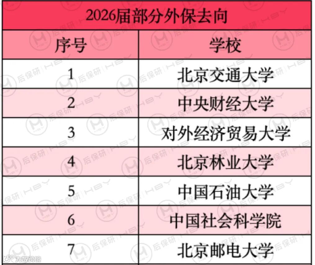 2026届推免生中,有统计学院学生推免至中央财经大学、对外经济贸易大学、北京林业大学、中国石油大学、中科院、北京邮电大学。有其他学院学生推免至北京交通大学经济管理学院、中央财经大学创新发展学院。
