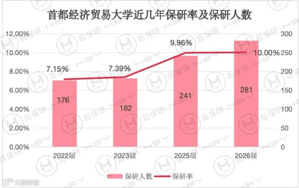 首都经济贸易大学2022届、2023届、2025届、2026届的保研率分别是7.15%、7.39%、9.96%、10%左右。推免名额分别是176人、182人、241人、281人。由此可见,首都经济贸易大学近几年的保研人数和保研率逐年递增,涨势较好,按照此趋势,在政府和各高校纷纷出台增加保研名额的政策背景之下,预计明年首都经济贸易大学保研率有望突破12%。点击领取文书7件套模板