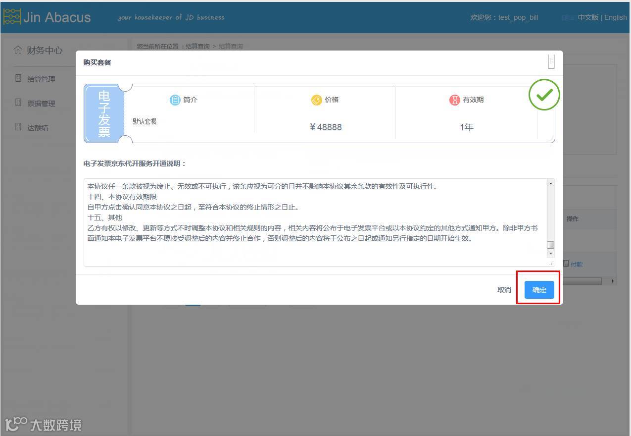 服务单位或大象登陆系统确认部署完成,商家可登陆系统查看是否可以开票。