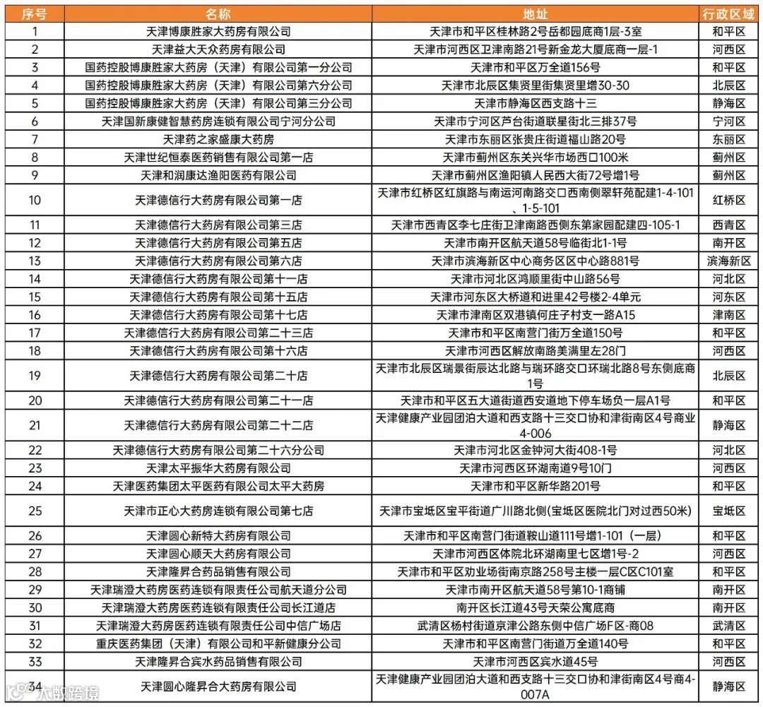 指定药店:共28家药店。此药店清单会根据市场变化实际调整,以保证“天津惠民保” 特定高额药品的供应。