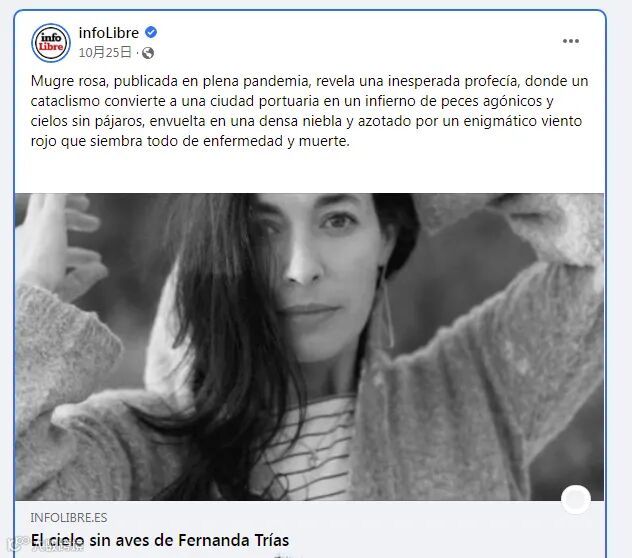 这部小说,很自然地让人联想到一部美国电影:传染病(película estadounidense, Contagion), 那部电影当初上映时反向平平,没料到,十年后,席卷世界的新冠疫情,和剧中情节神般相似,以至于全球大热,也是出乎意料了。而费尔南达这部小说,完稿时,拉丁美洲还没有开始面临这个问题,直到2020年10月,在蒙得维的亚出版时,整个乌拉圭,早就已经活在疫情爆发的时代了。难怪很多她的好朋友,尤其是布宜诺斯的几个,都说她具有远见卓识,是个预言家。小说的主题和内容,和疫情高度有关,是作者对环境的关注和对未来的思考,由此,她被誉为一个具有前瞻性和预见性的不可多得的女作家。也因此,有着无限想象力的她获得了举世闻名的索尔·胡安娜·伊内斯·德·拉·克鲁斯奖。