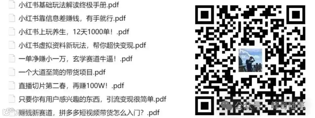 另外我还给大家整理一份互联网搞钱电子书,包含上百个副业项目,扫码加我微信,免费送给你,每天仅限前20人领取!