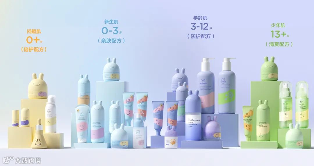 在产品研发上,兔头妈妈的研发理念是“分龄+仿生”这两条线,“分龄”是为了在护肤品类目中做到更有效、精准,针对不同年龄、不同生活场景下孩子的皮肤,满足更精细化的需求。
