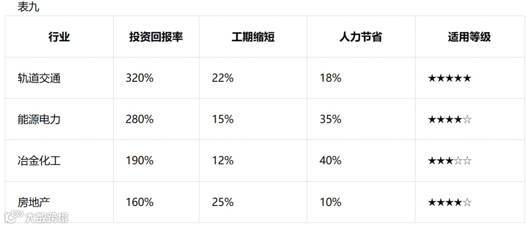 整合六大行业数据建立的效益评估模型显示,BIM技术应用呈现出显著的行业差异性: