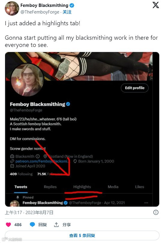X 更新了Blue/X Premium 支持页面,包含有关 highlights 亮点功能的详细信息。该功能的描述称:“通过突出显示您最好的帖子,它们将出现在您个人资料的专用选项卡中。”