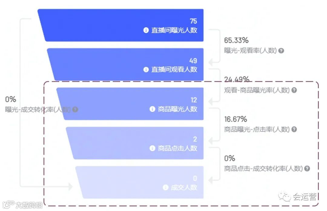 1)用户看见商品,对应指标:观看-商品曝光转化率,公式是:观看-商品曝光转化率=商品曝光数/直播间观看人数。