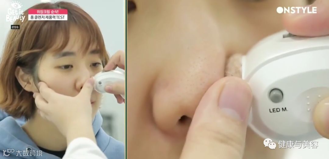 然后利用不同的洗面奶进行清洁,测定毛孔内的废物。