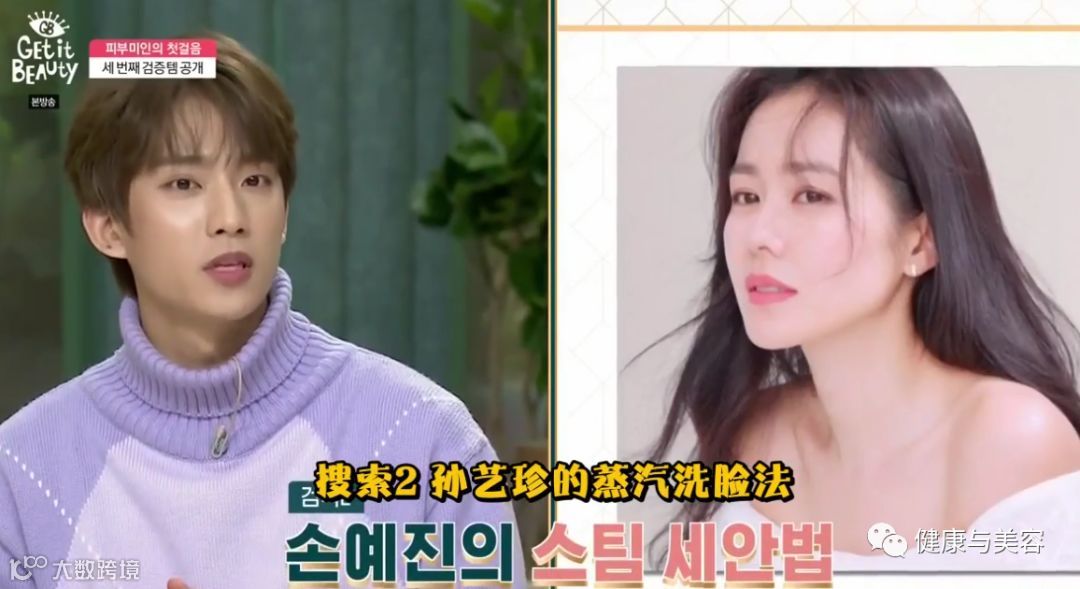 孙艺珍的蒸汽洗脸法:洗脸后用热毛巾敷脸,这样可以有效去掉皮脂,防止皮肤排泄物堆积导致毛孔越来越大。