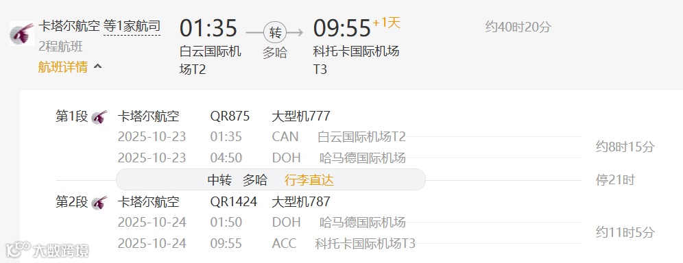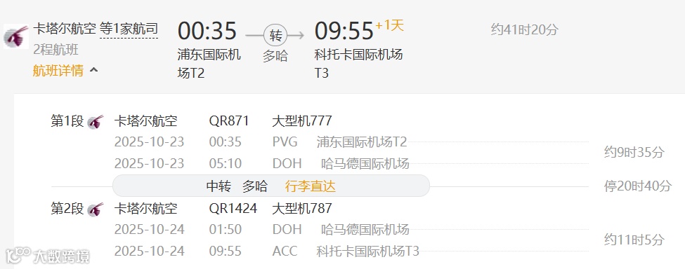 (在多哈中转约10小时20分钟)