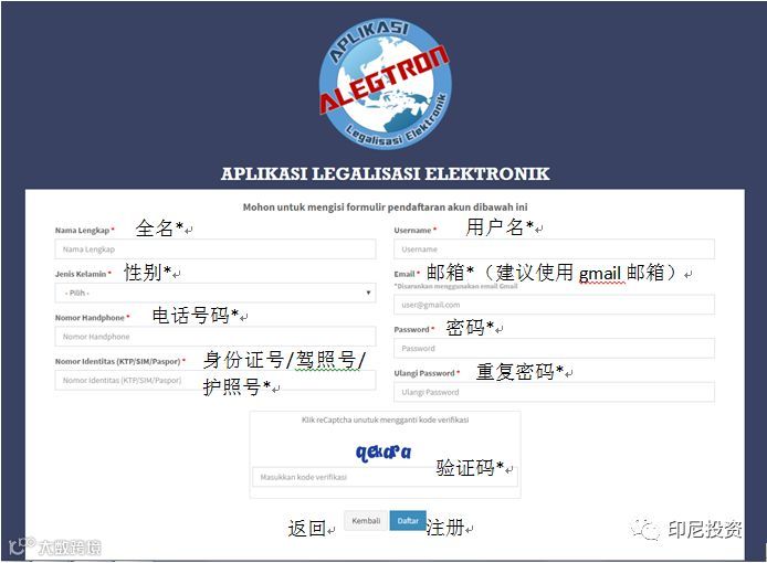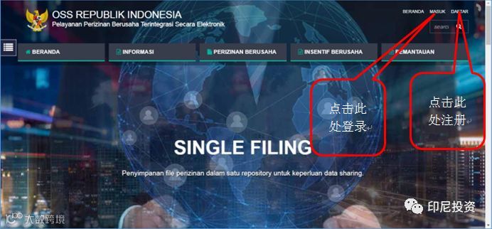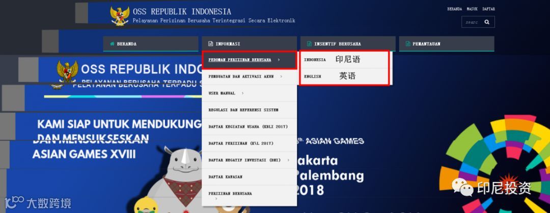 ***官网指南为印尼语,若需要完整的中文版系统操作指南文件,可联系印尼投资服务中心购买***