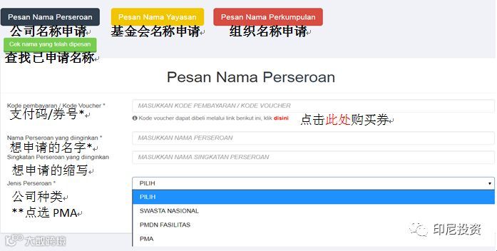 **申请公司名称点击黄色框内图标,“Pesan Nama”