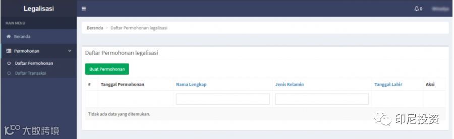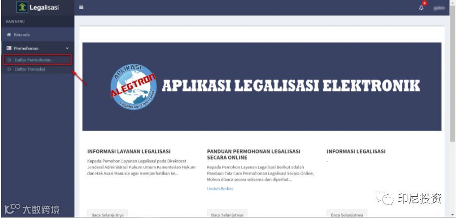 当点击“Legalisasi”(红色框区域)将出现以下页面