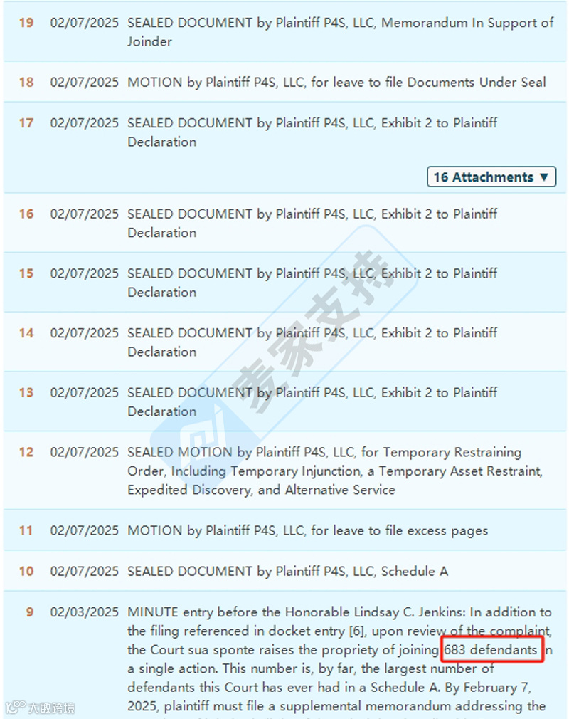 然而,P4S, LLC并未放弃,誓将维权进行到底。仅在诉讼被驳回的次日,即1月30日,便重新发起了新的维权攻势,案件号分别为25-cv-01036和25-cv-01059。其中,1036案件的被告人数高达683名,这一数字令美国法院都惊叹不已,称其为该法院有史以来被告人数最多的一次。同时,法院也公布了原告名称——Prime 4 Seasonings, LLC,并要求其说明被告人数的合理性。