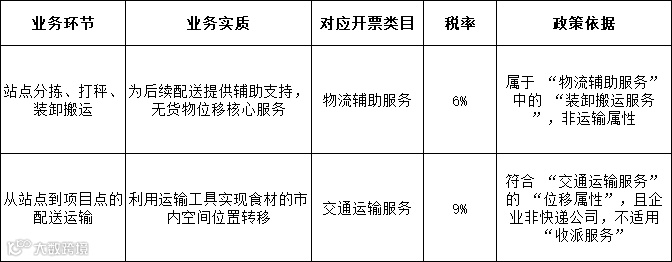 先看具体业务场景:某公司采购的食材,先由运输企业在站点汇集,再经分拣、打秤后,配送到公司市内各项目点。该运输企业非快递公司,此业务需明确两个关键问题: