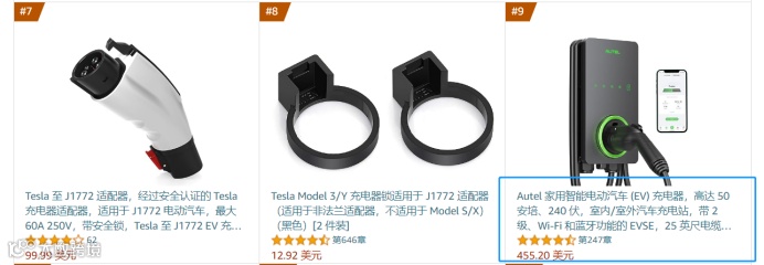 在亚马逊畅销榜单中,Autel家用智能电动汽车 (EV) 充电器位列第9名,是中国同类出海产品中的佼佼者。