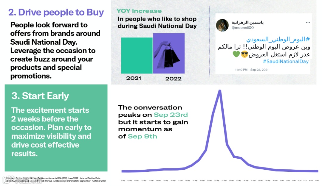 🟢 营销建议:通过社交媒体,围绕沙特国庆日进行品牌宣传,如发布国庆日相关的视频、图文等,帮助品牌快速与消费者产生情感联结。