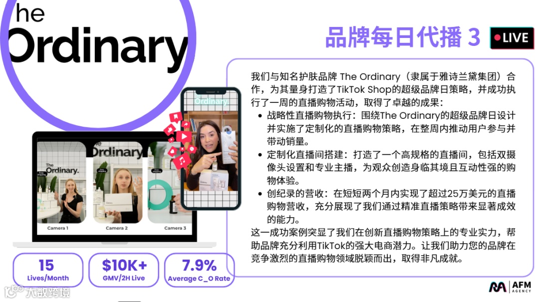 与知名护肤品牌The Ordinary合作,在TikTok Shop执行直播购物活动,成果显著: