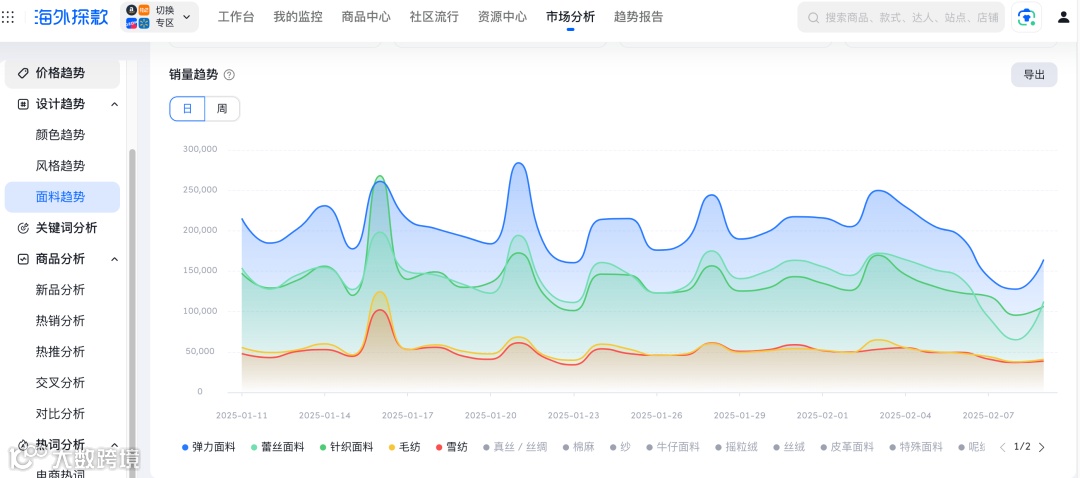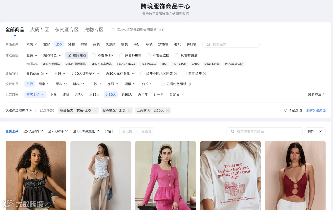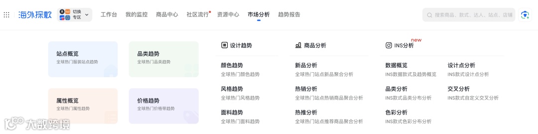 海外探款海外探款,主要提供亚马逊、Temu、INS、TikTok等海外平台上的最新服装数据。覆盖了全球4000+跨境服饰站点,拥有1亿+跨境商品数据与6W+服装垂类达人资源。它不仅能快速挖掘海外服饰趋势,提升跨境选品效率。还能降低营销成本、一键监控感兴趣的独立站点、电商店铺与INS博主。这为跨境电商卖家提供了更加精准和立体的市场洞察,帮助他们更好地理解消费者需求。