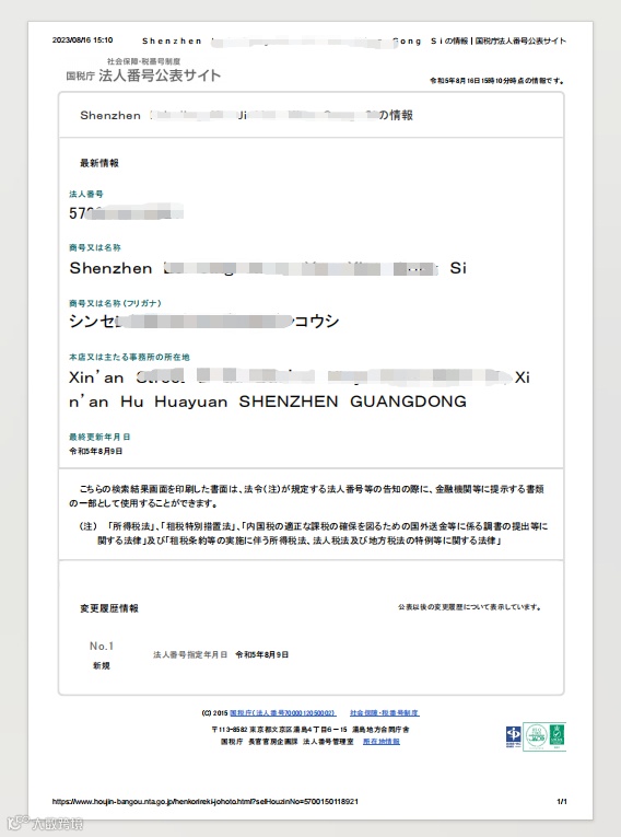 法人番号:为企业专属税号编码,一般由13位税号编码所组成。代表卖家的企业已经完成日本工商系统注册登记;
