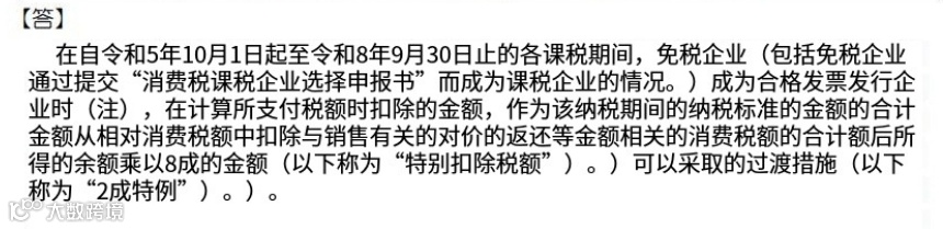 自令和5年10月1日(2023年10月1日)-令和8年9月30日(2026年9月30日)止,消费税相当于进项税额的80%