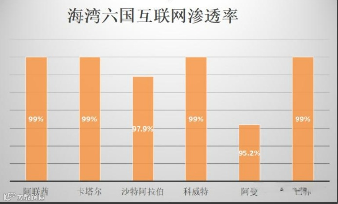 首先是互联网和手机的普及。中东地区互联网用户超过2亿,其中大多数人通过手机上网。中东地区平均互联网普及率超过60%,而海湾六国(阿联酋、卡塔尔、沙特阿拉伯、阿曼、科威特、巴林)互联网普及率都超过90%以上。在阿联酋和沙特等国,手机普及率已经达到100%,而在约旦和突尼斯等国家,估计到2026年手机普及率也将达到80%。