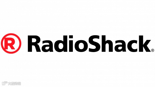 Radio Shack 的标志以小红环为核心,内嵌“R”字母,搭配黑色品牌名称,简洁明了。